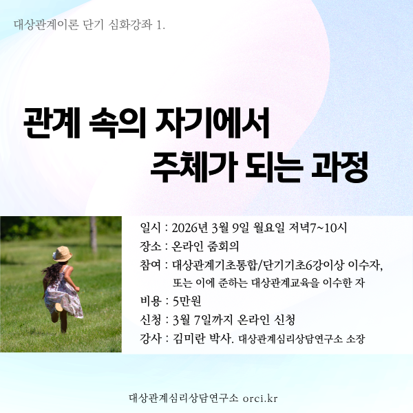 [단기심화 1] 관계 속의 자기에서 주체가 되는 과정 (3/9. 온라인)