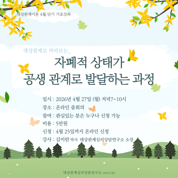 '대상관계로 바라보는' 월별 단기강좌 주제 :